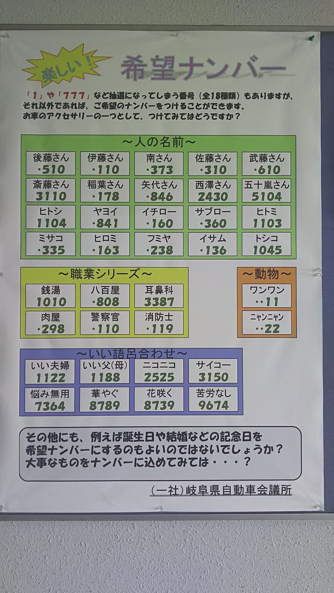 ケイズインターナショナル Ar Twitter 今日は岐阜の陸運局に名義変更で来ています なかなか面白い希望ナンバーのポスターを発見しました O T Co Y4rdhkdalr